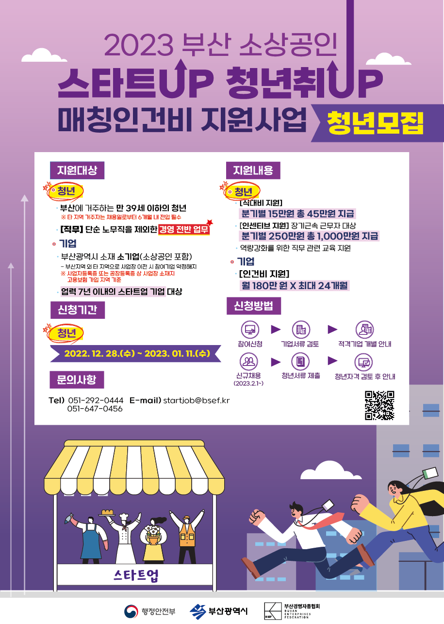 지원대상 : 소상공인 스타트업, 부산 소재 미취업 청년 (만18∼39세 이하)
